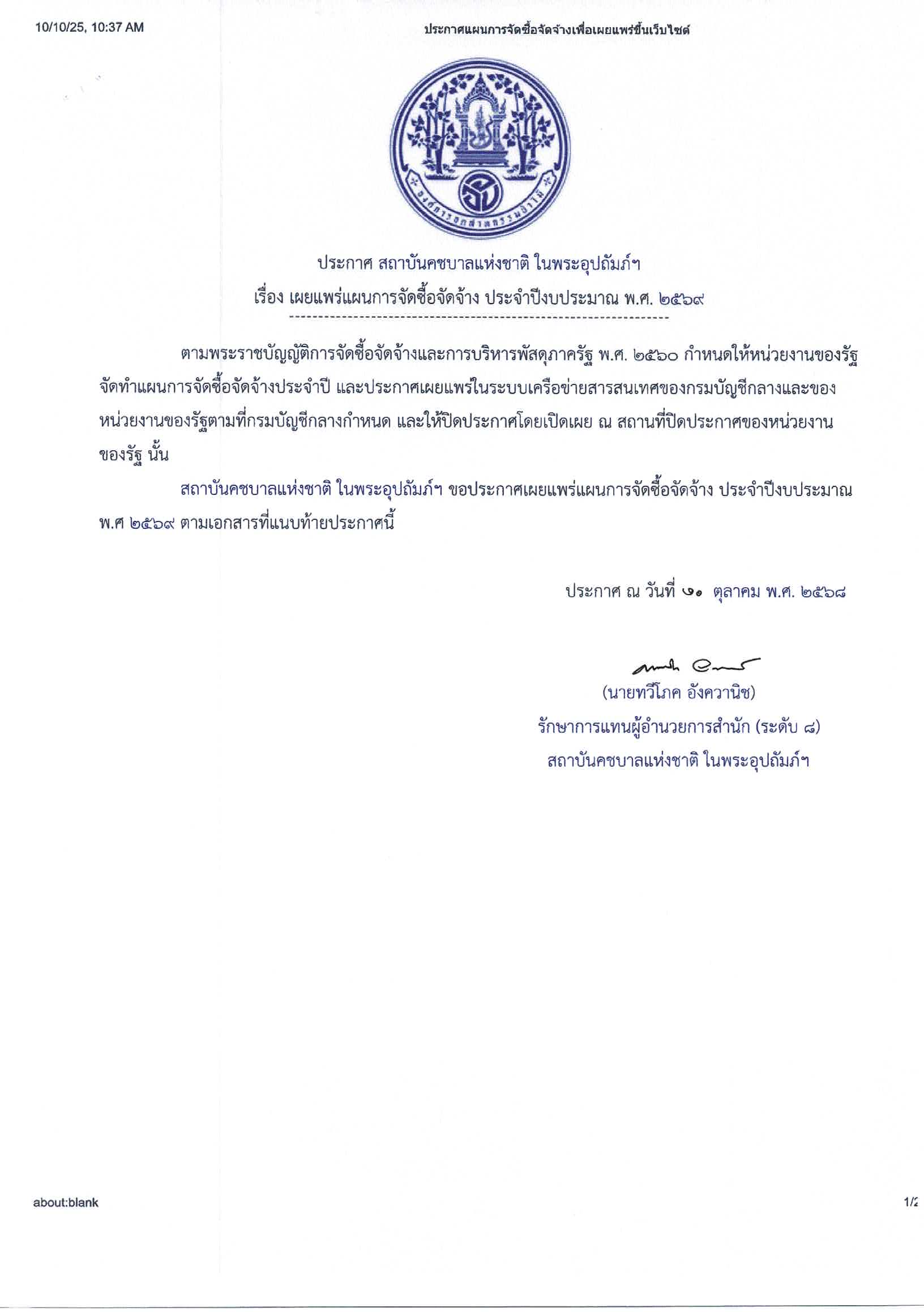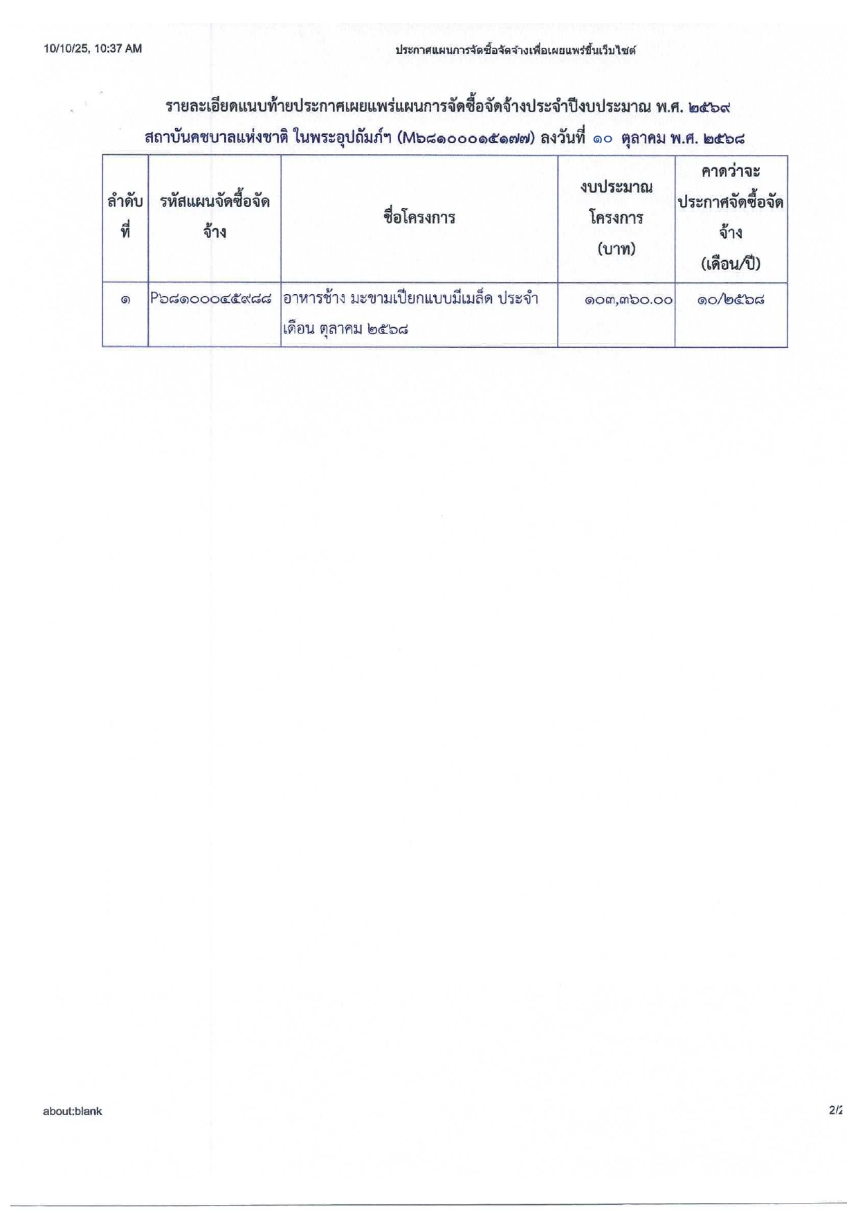 ประกาศผู้ชนะการเสนอราคา ซื้ออาหารช้าง ประจำเดือนตุลาคม 2568